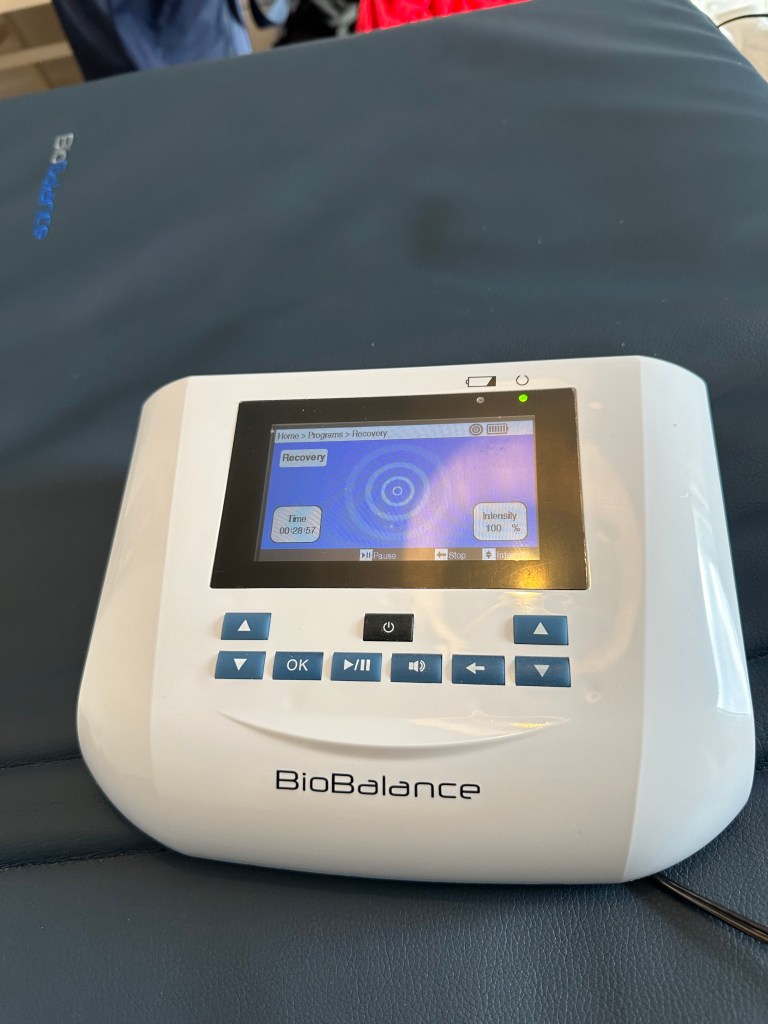 After lunch i lay on my PEMF mat for 30 min running the recovery program. PEMF stand for pulsed electromagnetic field therapy. I Have the biobalance from Dr Pawluk. It has a ton of health benefits: