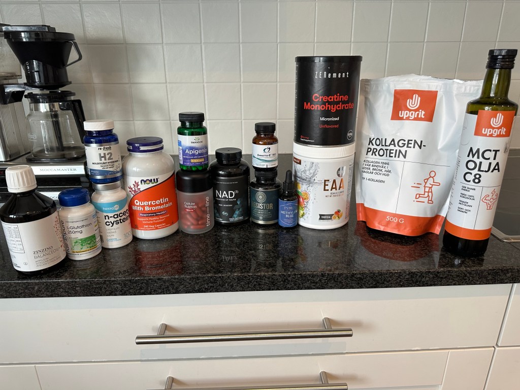 Supplements i take is Glutathione (powerful antioxidant), Glycine (for sleep and joints) and Apigenin (cell health, increase autophagy).